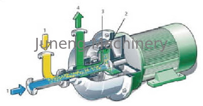 2 (или больше) жидкости смешанные количественно поданы к входу и включаются в барабанчик, они смешанные полно должные до маховая сила и 6 полостей в барабанчике, центростремительный насос на выходе преобразовывает головку скоростного напора жидкости вращая на быстром ходе в статическую высоту напора (0.10~0.2MPa) и посылает его к следующей деятельности.